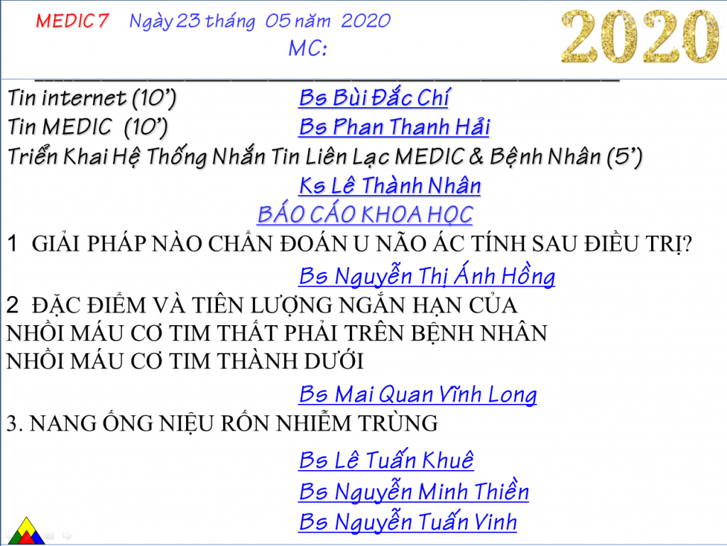 CHƯƠNG TRÌNH SINH HOẠT KHKT MEDIC 7 – NGÀY 23/05/2020 (ONLINE)