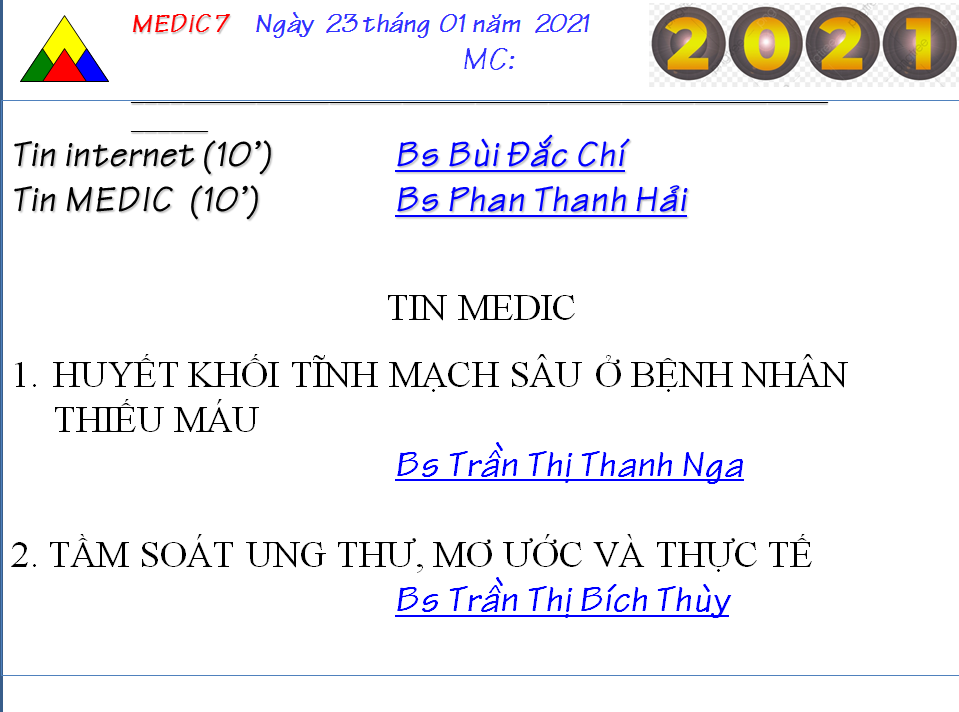 CHƯƠNG TRÌNH SINH HOẠT KHKT MEDIC 7 – NGÀY 23/01/2021 (ONLINE)