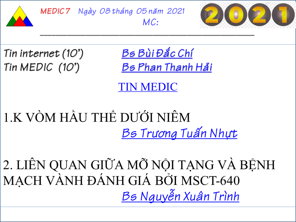 medic > Chuyên môn > Lịch Sinh hoạt Khoa học kỹ Thuật > CHƯƠNG TRÌNH SINH HOẠT KHKT MEDIC 7 – NGÀY 08/5/2021 (ONLINE)