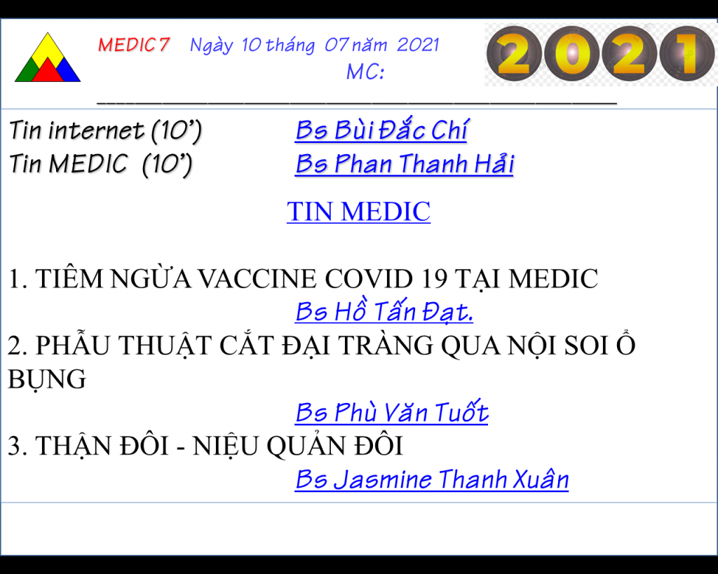 medic > Chuyên môn > Lịch Sinh hoạt Khoa học kỹ Thuật > CHƯƠNG TRÌNH SINH HOẠT KHKT MEDIC 7 – NGÀY 10/7/2021 (ONLINE)