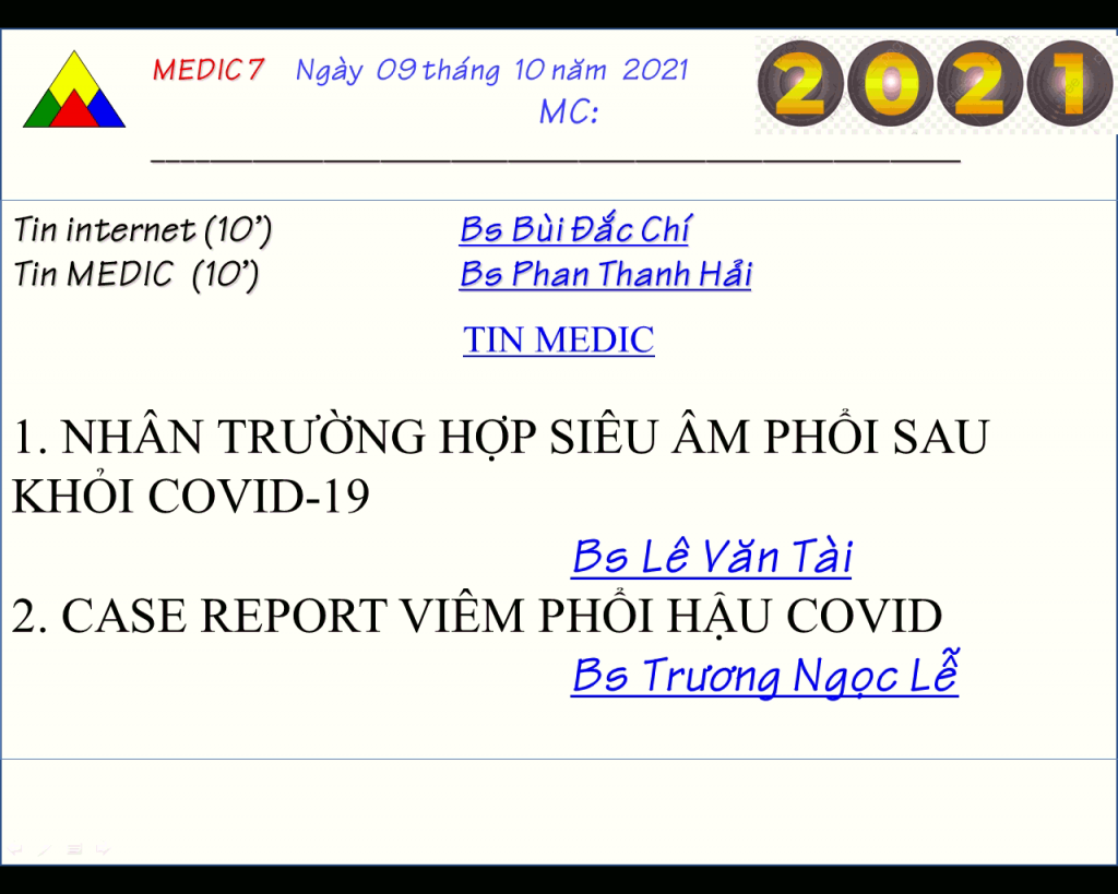 medic > Chuyên môn > Lịch Sinh hoạt Khoa học kỹ Thuật > CHƯƠNG TRÌNH SINH HOẠT KHKT MEDIC 7 – NGÀY 09/10/2021 (ONLINE)